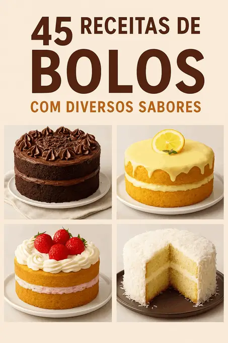 Aprenda 45 receitas exclusivas de bolos caseiros com nosso curso completo. Receitas testadas, passo a passo em ebook e dicas de confeitaria para nunca mais errar!